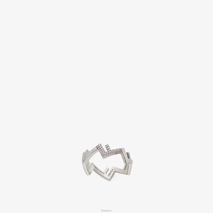 Anillo con motivo ff por toda la prenda, elaborado en metal con acabado paladio. adornado con una f decorada con cristales blancos.