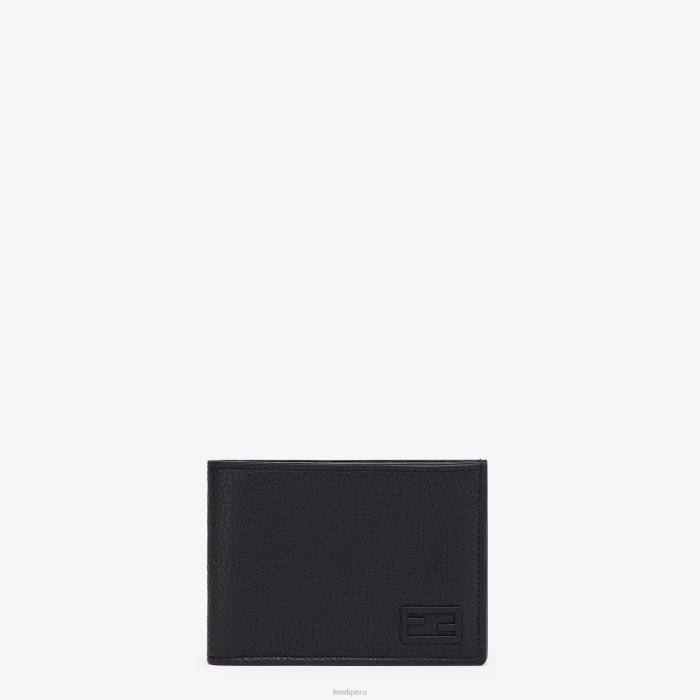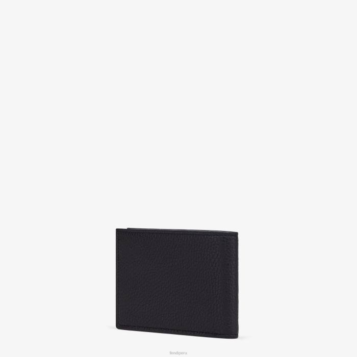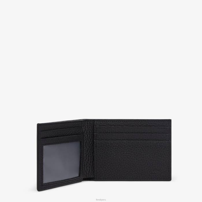 Cartera plegable con compartimento para billetes, cuatro ranuras para tarjetas y un bolsillo para documentos revestido con textura transparente. Confección en piel cuoio romano negra. adornado con un motivo baguette ff esmaltado tono sobre tono.