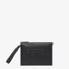 riñonera confeccionada en piel plena flor negra, con logotipo fendi roma con efecto 3D.