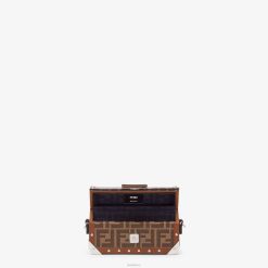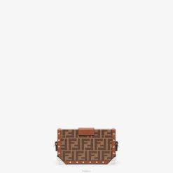 Bolso baguette rígido con solapa cuadrada y cierre magnético ff. la correa cruzada es ajustable y desmontable. Confeccionado en tela con motivo ff. adornado con detalles de cuero marrón y tachuelas. forrado con ff lycra. Artículos metálicos con acabado en paladio.
