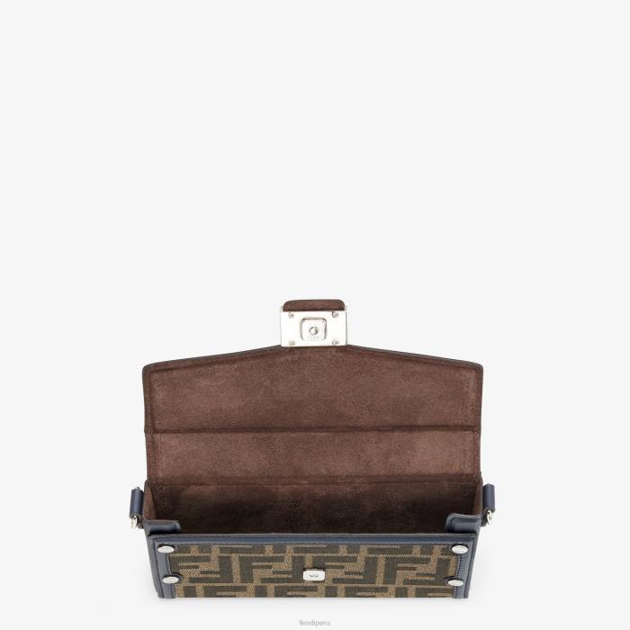 Bolso baúl mini baguette suave confeccionado en tejido con motivo ff en jacquard. solapa con cierre magnético ff. adornado con cuero azul.