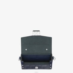 Bolso baúl baguette suave confeccionado en piel de color azul oscuro con motivo ff con textura de rayas. solapa con cierre magnético ff. adornado con cuero liso tono sobre tono.