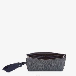 cuenta con un compartimento interno con cierre de cremallera, tarjetero y accesorios metálicos con acabado en paladio.