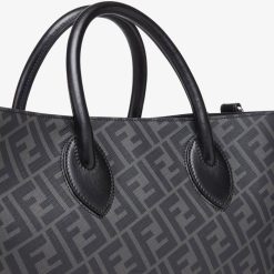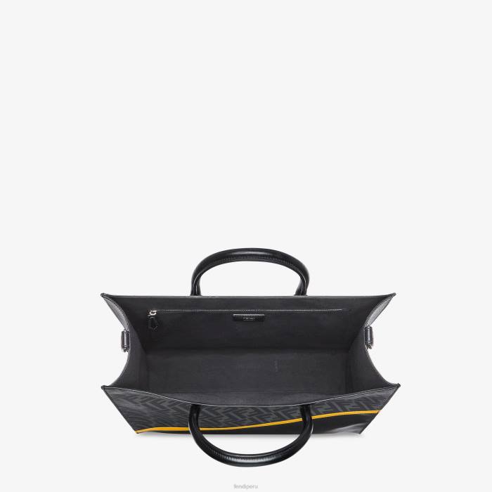 Shopper confeccionado en piel negra y tejido con motivo ff gris.