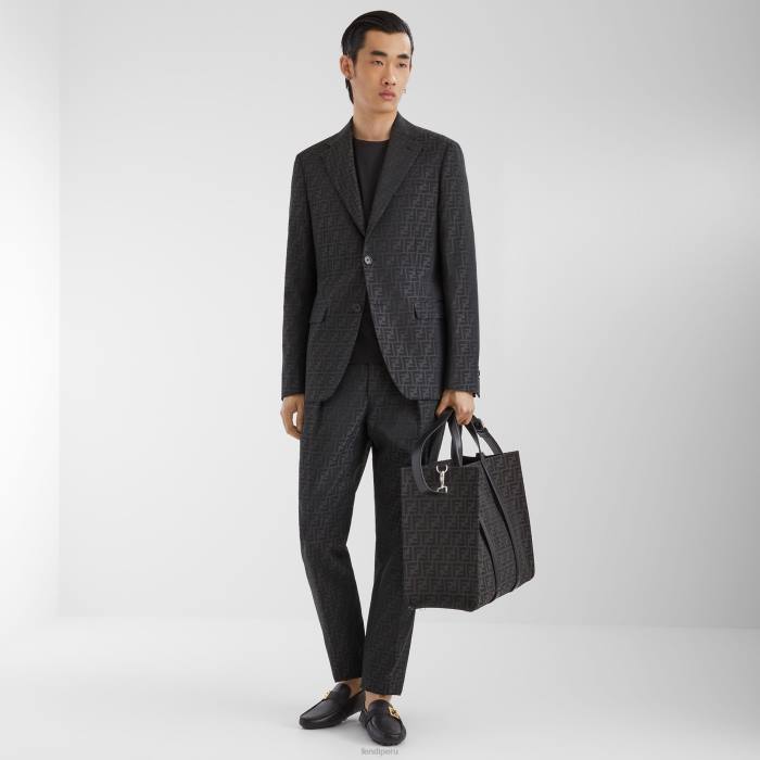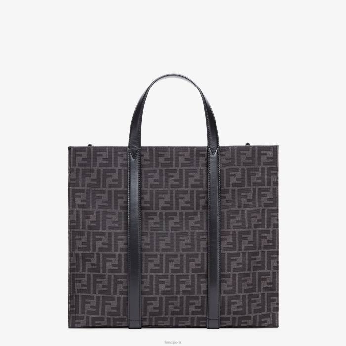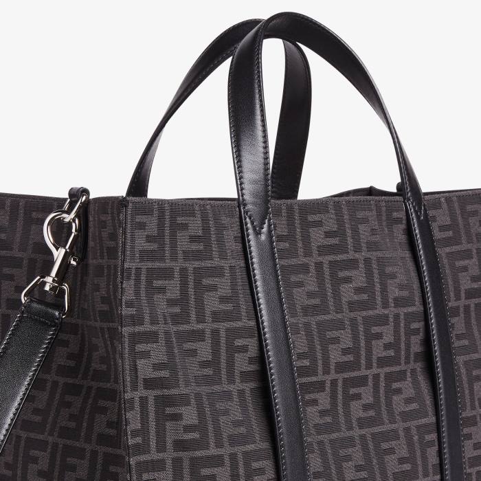 Amplio shopper confeccionado en tejido jacquard reciclado con motivo ff en gris y negro.