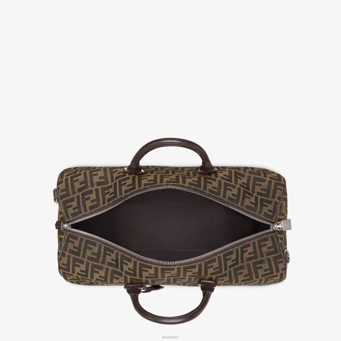Bolso grande confeccionado en tejido reciclado con motivo ff jacquard y detalles en piel tono sobre tono. bolsillo diagonal con cremallera en la parte delantera.