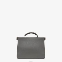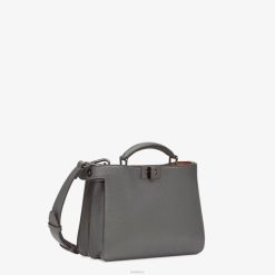 Bolso peekaboo iseeu, tamaño pequeño, con dos compartimentos divididos por una partición rígida, con el icónico cierre giratorio en la parte delantera y cierre de cremallera en la parte trasera. bolsillo interno desmontable. Se puede llevar en la mano o al hombro gracias a su asa y a la bandolera ajustable y desmontable. Confeccionado en piel cuoio romano en color gris asfalto. Forro de piel color burdeos y natural. bolsillo de cuero gris. Artículos metálicos con acabado de rutenio ultra negro.