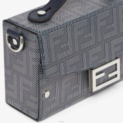 Bolso baguette baúl suave confeccionado en piel Fendi Shadow blanca y azul con motivo ff de textura a rayas. adornado con cuero azul oscuro. solapa con cierre magnético ff.