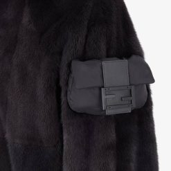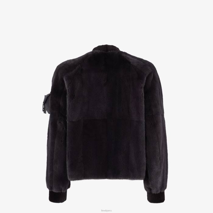 Cazadora bomber con cuello y puños de punto. dos bolsillos ribeteados. cierre de cremallera. confección en visón negro con bolsillo de parche de nailon en la manga izquierda.