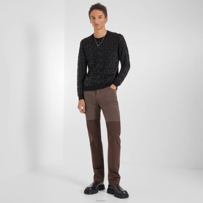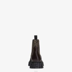 Botines chelsea fendi force con puntera cuadrada e inserción elástica en los laterales. fabricado en cuero marrón oscuro. Detalles de tejido jacquard ff en color marrón y tabaco. Suela de goma ligera con detalle ff en relieve en la puntera y el talón.
