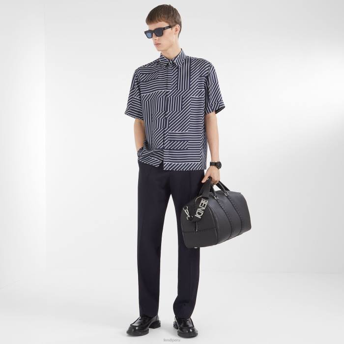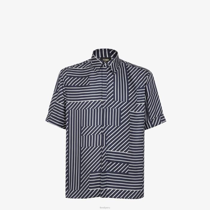 Fendi hombres camisa de seda 2LH8E1919 vestir azul