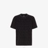 Camiseta oversize de manga corta y cuello redondo. Confección en punto de algodón con motivo ff negro y marrón estampado por toda la superficie.