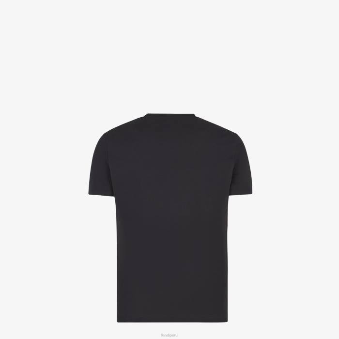 Fendi hombres Camiseta de algodón 2LH8E1989 vestir negro