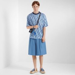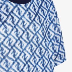 Camiseta regular fit de manga corta. Confección en malla técnica con motivo ff diagonal efecto ikat estampado íntegramente en azul y blanco. cuello redondo en azul sólido.