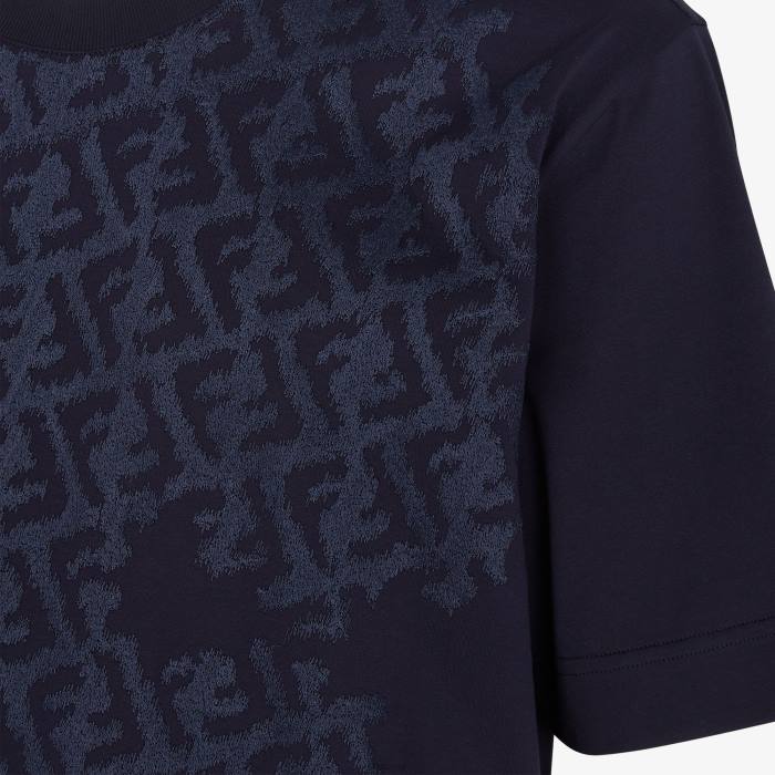 Camiseta oversize de manga corta y cuello redondo. hecho de jersey azul. decorado con motivo ff efecto ikat bordado en la parte delantera en los mismos colores.