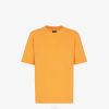 Camiseta oversize de manga corta y cuello redondo. hecho de jersey blanco. decorado con un motivo ff efecto ikat en tono naranja bordado en la parte delantera.