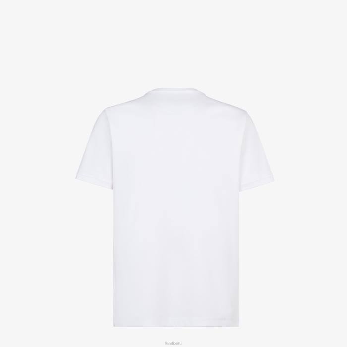 Camiseta regular fit con cuello redondo y manga corta. confeccionado en jersey de algodón blanco. adornado con un parche fendi roma bordado con hilo multicolor.