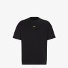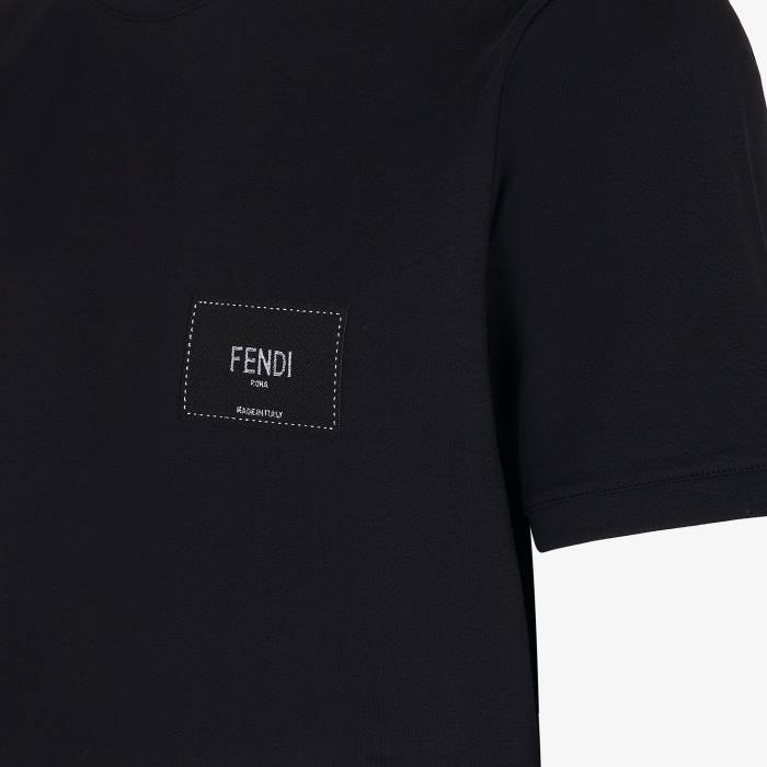 Camiseta regular fit con cuello redondo y manga corta. confeccionado en jersey de algodón negro. adornado con la etiqueta de jacquard bordada de Fendi en el pecho.