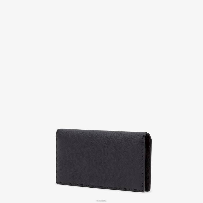 billetera continental. con un bolsillo con cremallera y diez ranuras para tarjetas. Confección en piel cuoio romano negra. adornado con letras fendi roma y bordes rematados con costuras selleria cosidas a mano. Artículos metálicos con acabado en paladio.