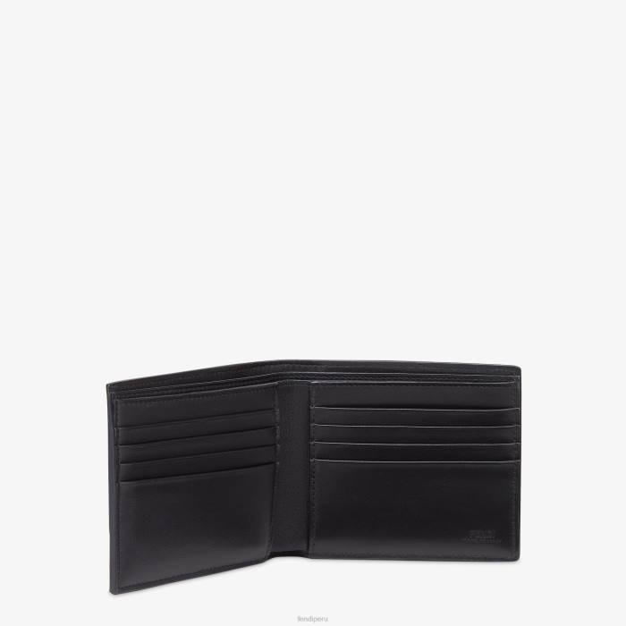 Cartera con ocho tarjeteros interiores y dos compartimentos para billetes. Confeccionado en tela con motivo ff. Detalle diagonal en piel de caimán negro. Forro de piel negra.