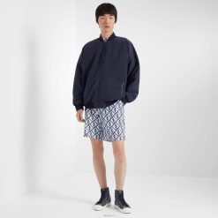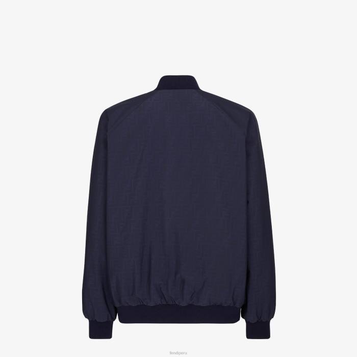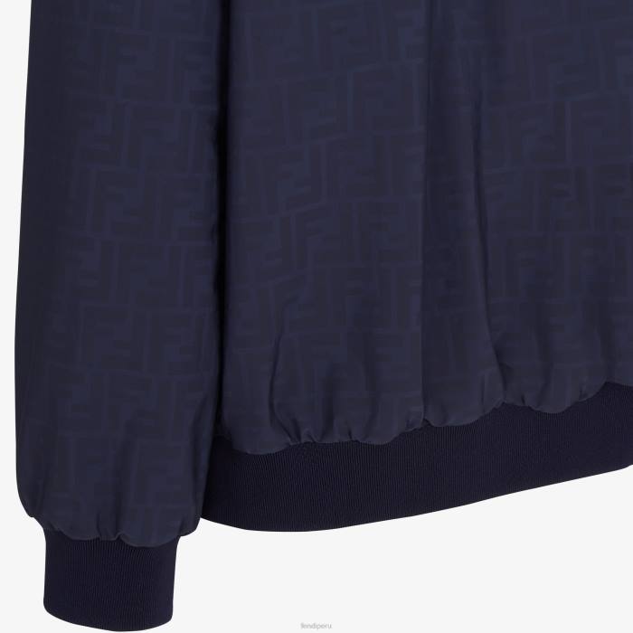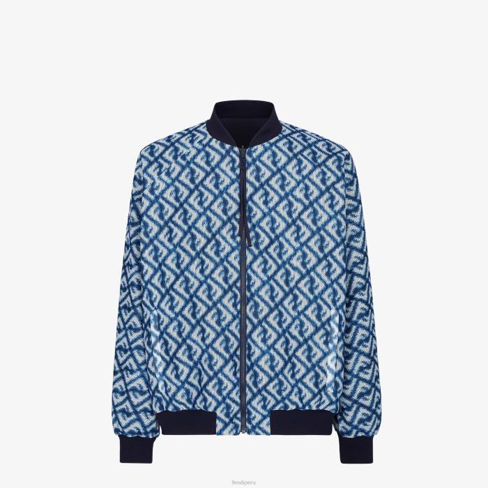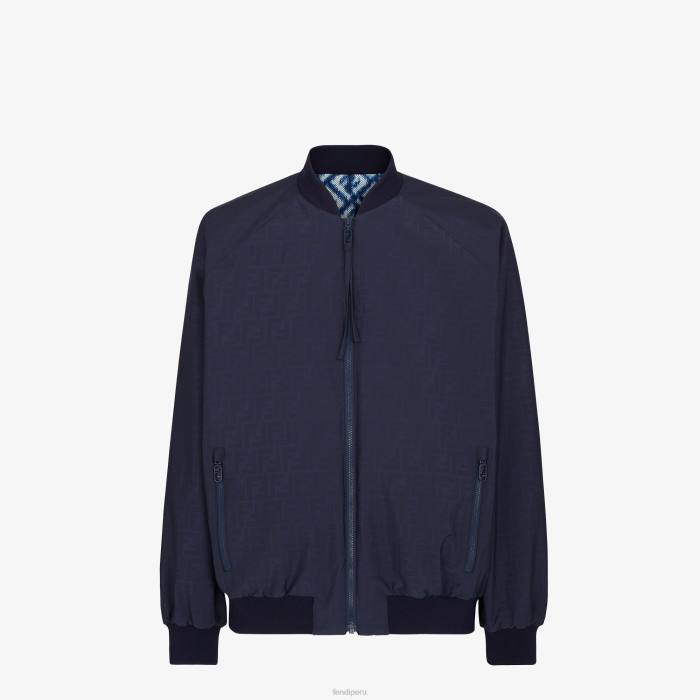 Cazadora bomber reversible con cuello, puños y bajo de punto acanalado. Mangas largas raglán y bolsillos laterales con cremallera. Cierre de cremallera con doble cursor. fabricado en nailon azul. Cuando está mojado, el tejido revela un motivo ff del mismo tono. Forro con estampado del motivo FF diagonal efecto ikat en azul y blanco.
