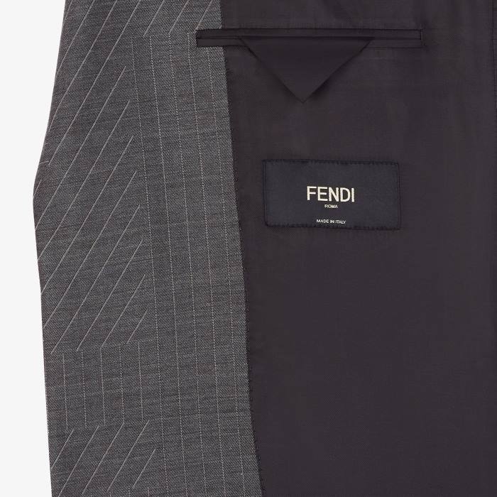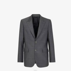Chaqueta regular fit con abotonadura sencilla. cuello solapa, bolsillo en el pecho y bolsillos delanteros de doble vivo. forrado. Cierre con dos botones forrados a juego. confección en lana con motivo Fendi Shadow por toda la prenda en tonos grises.