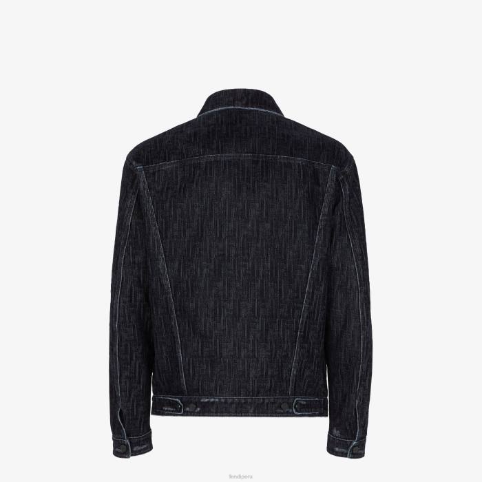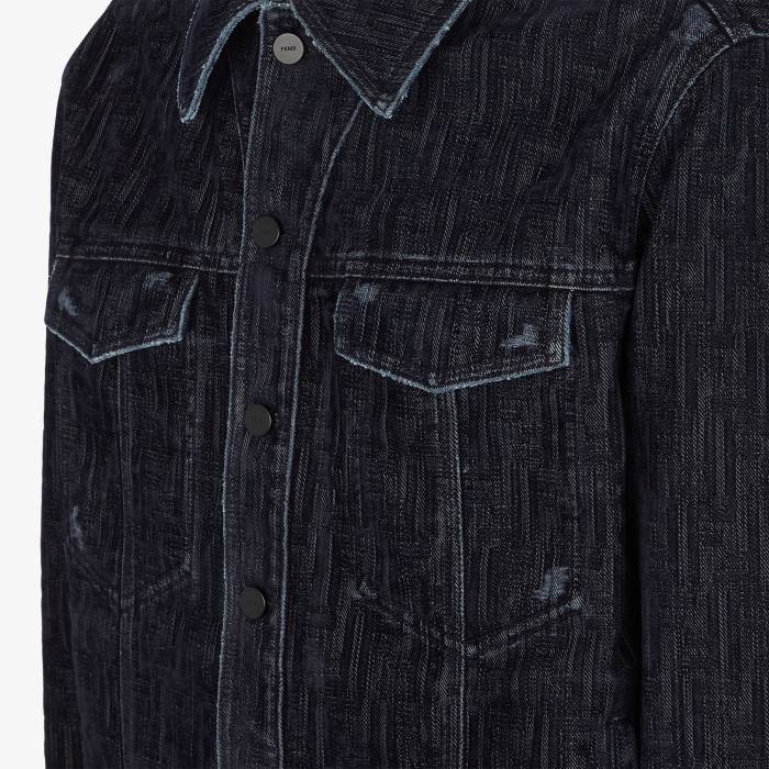 Chaqueta oversize con cuello camisero y bolsillos de parche en el pecho. sin forro. cierre de botón. Confección en denim azul con motivo ff flocado por toda la prenda.