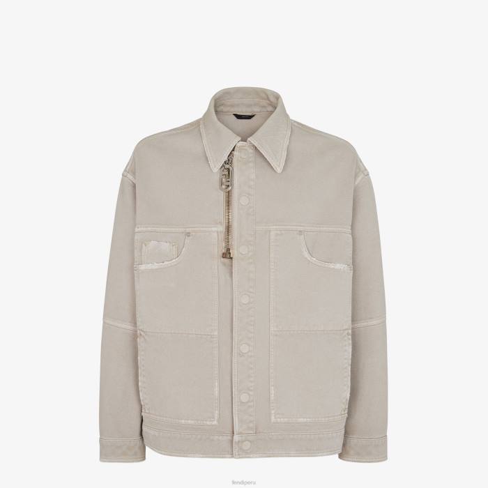 Chaqueta con cuello camisero y manga larga. cuatro bolsillos de parche en la parte delantera. Cierre con botones automáticos cubiertos. Confeccionado en denim de algodón beige. personalizado con bolsillo monedero y cremallera vertical con cursor fendi o’lock. adornado con remaches y detalles desgastados. etiqueta Fendi bordada a juego en la parte posterior.