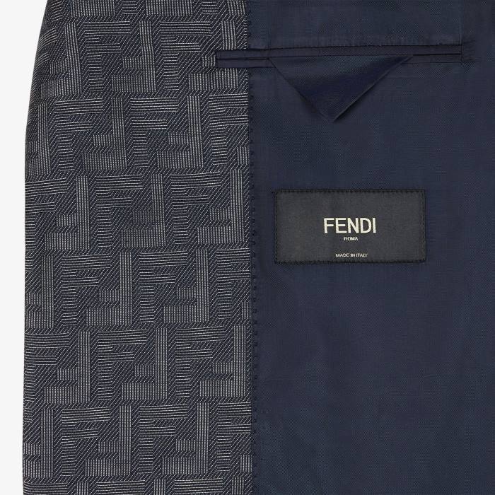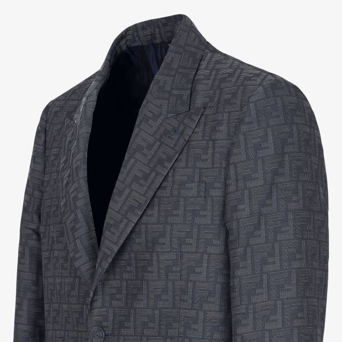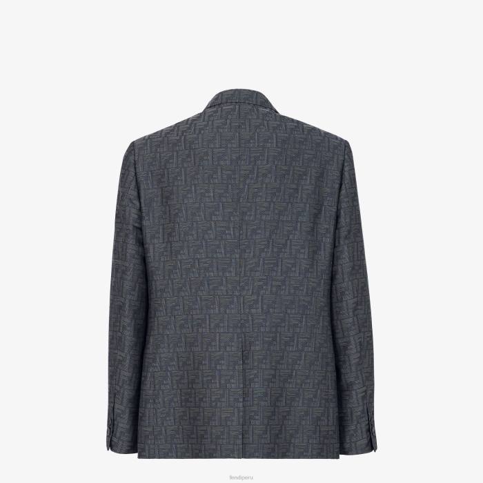 Chaqueta regular fit con abotonadura sencilla. cuello solapa, bolsillo en el pecho y bolsillos delanteros de doble vivo. forrado. Cierre con dos botones forrados a juego. Confección en tejido con motivo micro fendi sombra jacquard en tonos azules.