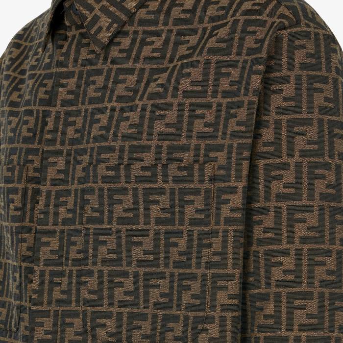 Chaqueta con cuello camisero y bolsillos de parche en el pecho. Cierre con botones ocultos. Confección en tejido marrón con motivo ff en jacquard por toda la prenda.