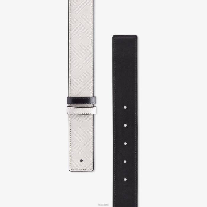 Cinturón reversible que se completa con una hebilla con tachuelas. Confección en piel Fendi Shadow en color gris claro con motivo ff de textura a rayas. Forro de piel negra.