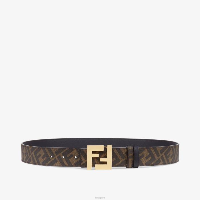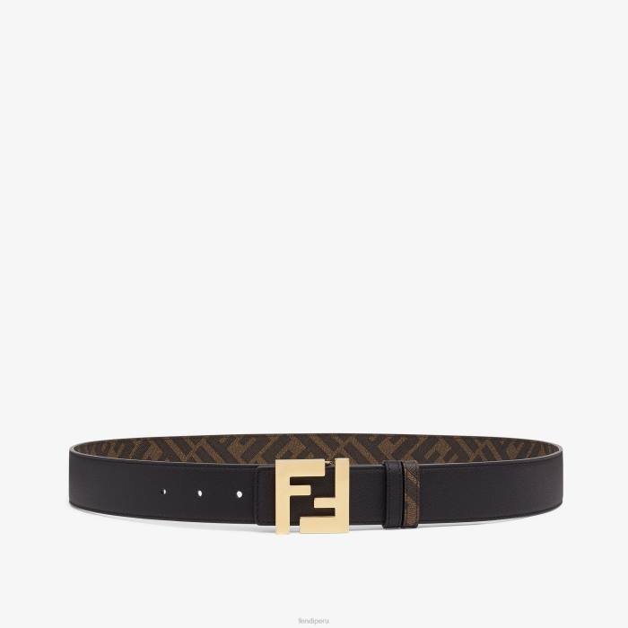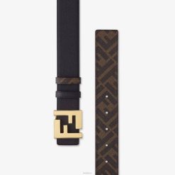 cinturón reversible. hebilla icónica con tachuelas ff. fabricado en cuero negro. reverso de tela con motivo ff marrón y tabaco. artículos de metal con acabado dorado.