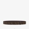 Cinturón reversible con dos trabillas. hebilla icónica con tachuelas ff. Confección en piel cuoio romano azul. Forro de pu con motivo ff en tabaco y marrón. Artículos de metal esmaltados en azul.