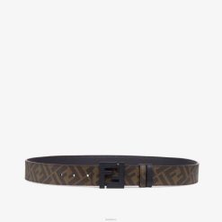 Fendi hombres cinturón reversible de piel y tela 2LH8E2489 accesorios marrón