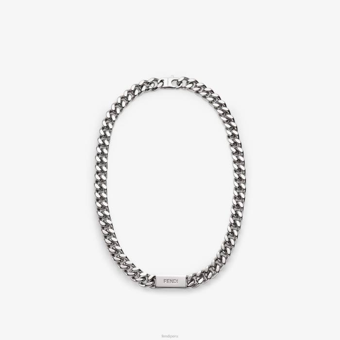 Collar de eslabones de cadena cerrado con clip. fabricado en metal con acabado paladio sin níquel. decorado con una placa y letras fendi.