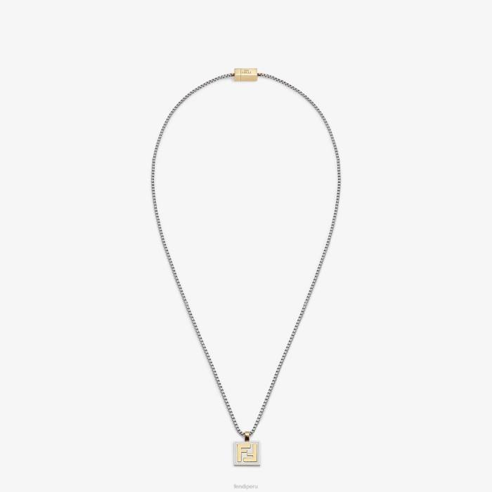 Collar con cadena fina, cerrado con pequeño clip. fabricado en metal con acabado paladio sin níquel. decorado con colgante ff dorado.