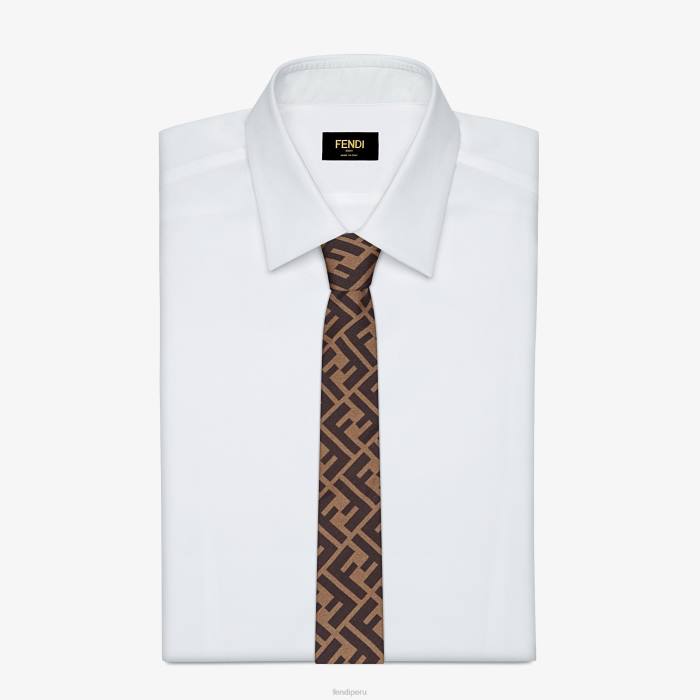 corbata de seda. ancho 6,5 cm – 2,6 pulgadas hecho de sarga de seda marrón. motivo ff en toda la prenda.