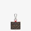 Funda porta auriculares fabricada en piel negra con detalles en tejido ff negro y gris. clip con logo fendi grabado. Artículos metálicos con acabado en paladio.