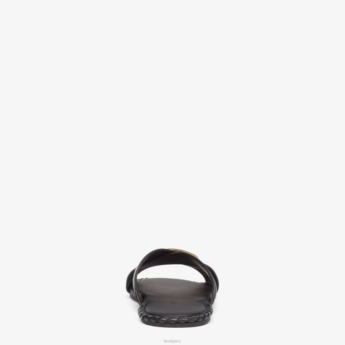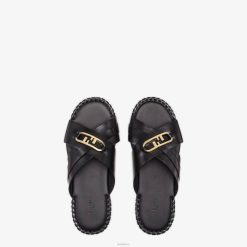 Chanclas rematadas a mano con tiras de cuero negro entrelazadas. adornado con un motivo fendi o’lock de metal con acabado dorado.