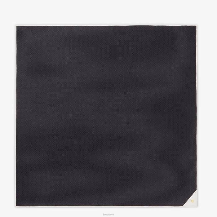 Fular cuadrado confeccionado en seda. acabado con motivo micro ff en negro y gris antracita.