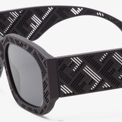Anteojos rectangulares Fendi Shadow. Construcción en nailon negro mediante técnica de impresión 3D y motivo de textura de rayas ff en toda la montura. lentes grises.