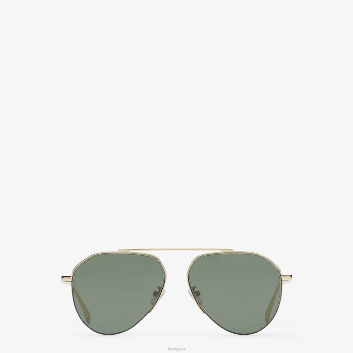 Gafas de sol estilo piloto en metal color dorado. En la parte delantera presenta un motivo ff grabado en la parte superior. lentes verdes. almohadillas nasales ajustables con el logotipo de fendi.