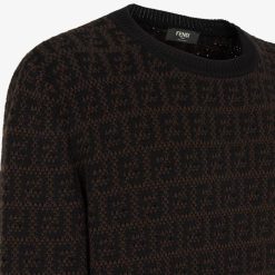 Jersey regular fit con cuello redondo y manga larga. bordes acanalados. De punto, con intarsia con motivo FF en marrón y negro.