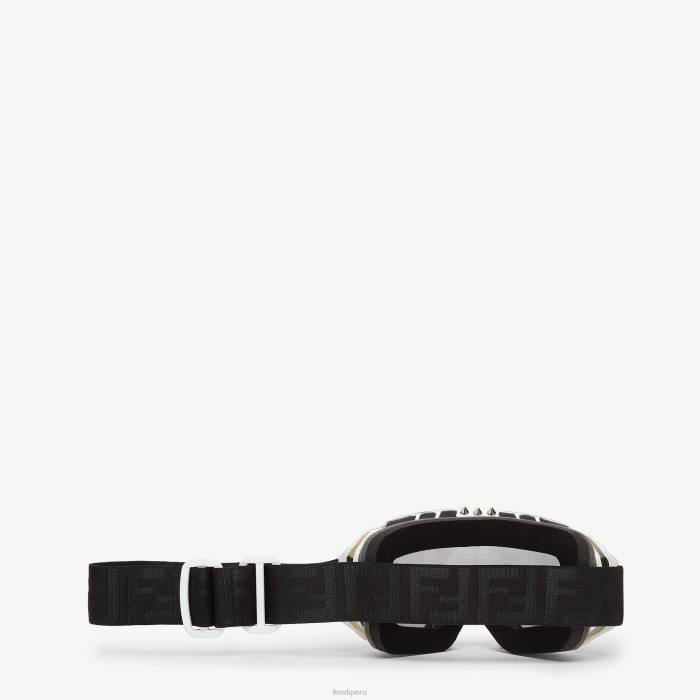 Gafas de esquí con hebilla ajustable en color blanco. el frente está rematado con microtachuelas. Cinta elástica con motivo ff en los mismos tonos. lentes espejadas con motivo ff.