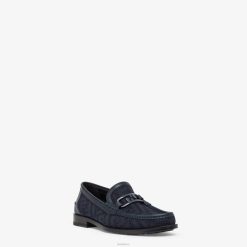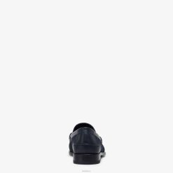 mocasines con motivo fendi o’lock. Confección en punto ff azul con detalles en piel tono sobre tono. suelas de cuero. Artículos de metal esmaltados en azul.