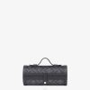 Insignia con el nombre de Fendi O’lock. fabricado en piel beige con correa de piel negra. Adornado con detalle de tejido reciclado con motivo ff marrón y tabaco. Artículos metálicos con acabado en paladio.