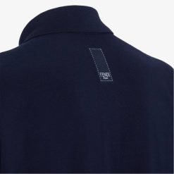 polo de manga corta. este modelo tiene un cuello clásico abrochado con un botón del mismo color. Confeccionado con piqué de algodón de color azul oscuro. decorado con la etiqueta de jacquard bordada de Fendi en el pecho y la espalda. cuello acanalado.