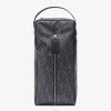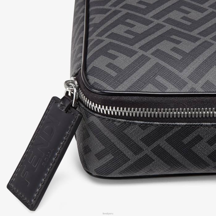 Portacamisas con un solo compartimento y cierre de cremallera. Confección en tela con motivo ff en gris y negro. adornado con detalles de cuero negro y tirador de cremallera de cuero con letras fendi roma. Artículos metálicos con acabado en paladio.