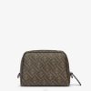 Portalápices de viaje con cierre de cremallera. Confección en tela con motivo ff en color marrón y tabaco. acabado con detalles de cuero marrón. Forro de tela lavable. Artículos metálicos con acabado en paladio.