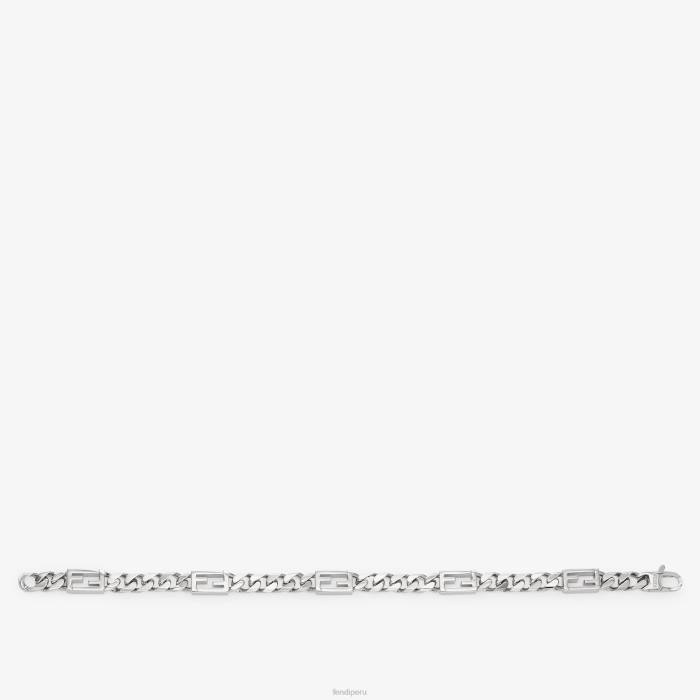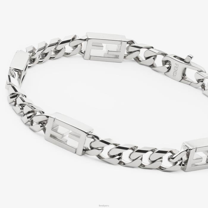 pulsera con cadena de eslabones y motivo baguette ff, cerrada con clip. fabricado en metal con acabado paladio.